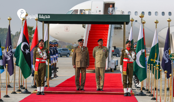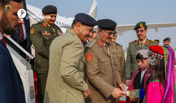 وصل القائد العام للقوات المسلحة العربية الليبية، المشير خليفة حفتر، رفقة نائبه الفريق صدام خليفة، إلى جمهورية باكستان الإسلامية الشقيقة، تلبيةً لدعوة رسمية، حيث كان في استقبالهما قائد الجيش الباكستاني المشير عاصم منير، وعدد من كبار قيادات الجيش الباكستاني، وذلك وسط مراسم استقبال رسمية رفيعة المستوى.